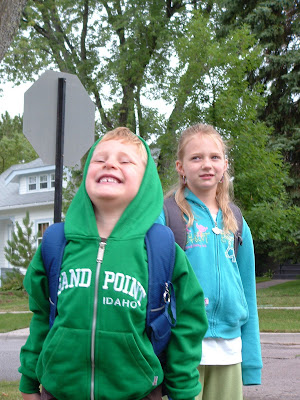 Niblet, first day of kindergarten, 2008 (Girl contemplates shoving him to the floor by the 5th grade lockers)