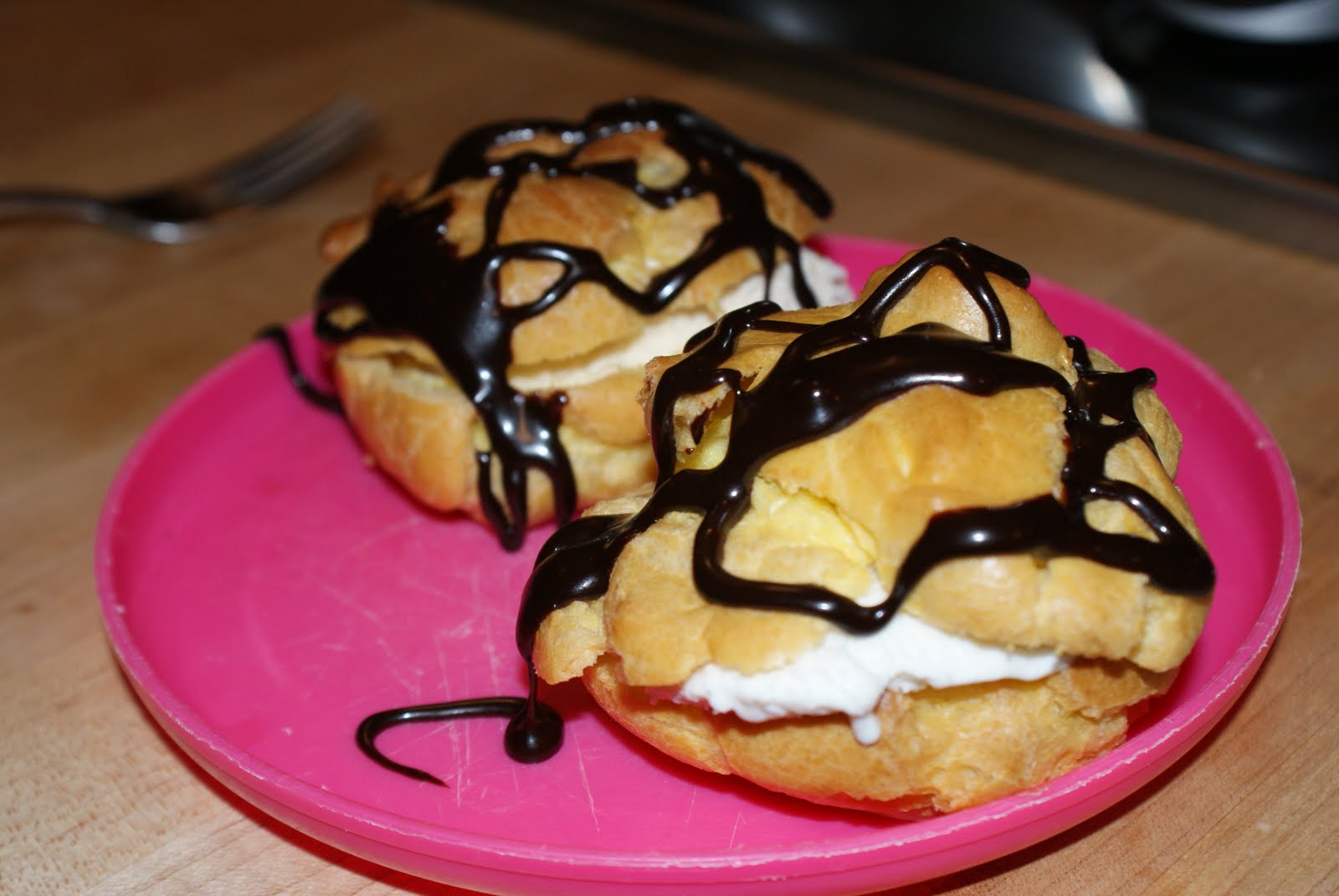 What I realized, as the day went on, was that the Gourmet recipe was incredibly unrealistic. As if a person–on a Monday–can just take out the ingredients, stand in front of the stove, and make profiteroles and hot fudge.