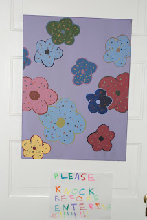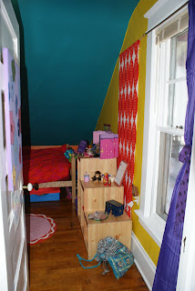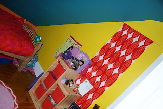 She wanted polka dots all over her walls, but we talked her into hanging dottish fabric instead.