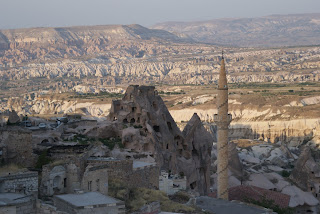 Paco was so wacked that he slept through the first Call to Prayer that next morning, but Groom, Girl and I woke up and stayed awake, which provided the side benefit of watching the take-off of nearly 40 hot air balloons (one of Goreme’s tourist mainstays). While the recording of the Call to Prayer kind of cracks me up because it ends with a static-y “thump,” as though the singer of the meuzzin is a sort of Johnny Rotten throwing the mic to the stage and stomping off after an encore of “Anarchy in the U.K.,” the sounds of the propane fires in the sky at 5:00 a.m. are more mystical, like dragons raining down to invade the village. A person not sufficiently worn down by Seussian adaptation could hardly be expected to sleep, really.