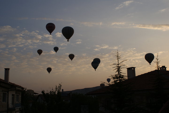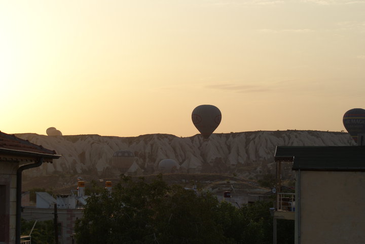 Paco was so wacked that he slept through the first Call to Prayer that next morning, but Groom, Girl and I woke up and stayed awake, which provided the side benefit of watching the take-off of nearly 40 hot air balloons (one of Goreme’s tourist mainstays). While the recording of the Call to Prayer kind of cracks me up because it ends with a static-y “thump,” as though the singer of the meuzzin is a sort of Johnny Rotten throwing the mic to the stage and stomping off after an encore of “Anarchy in the U.K.,” the sounds of the propane fires in the sky at 5:00 a.m. are more mystical, like dragons raining down to invade the village. A person not sufficiently worn down by Seussian adaptation could hardly be expected to sleep, really.