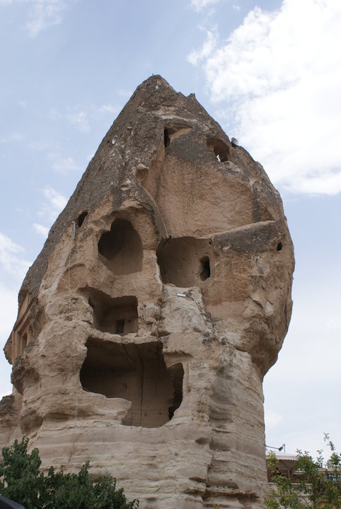 After buying him a can of pop in the airport, the fatigued trooper announced, “I’m better now, Mom. All I needed were some bubbles, and now I’m good.” With everyone’s attitude improved, AND THANK YOU, COCA-COLA LIGHT, we hopped on the flight to Keysari, at the end of which we retrieved all 8 of our suitcases and wandered outside, where we were met by our pal, The Hospitable Expat, she who helped motivate and shape the entire plan for our year abroad. Hospitable Expat had arranged for a 16-seat mini-bus to meet us, for a reasonable fee, and drive us the hour to Goreme, whereupon we were deposited nearly twenty-four hours after launching the trip, at this small hotel: