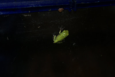 which entailed us running around in circles, dithering, “What do we feed a tree frog? What kind of habitat do we need? Who will clean its habitat? Do we need to clean its habitat? Do frogs even poop, or can we ignore it and thereby never have to clean its habitat?”
