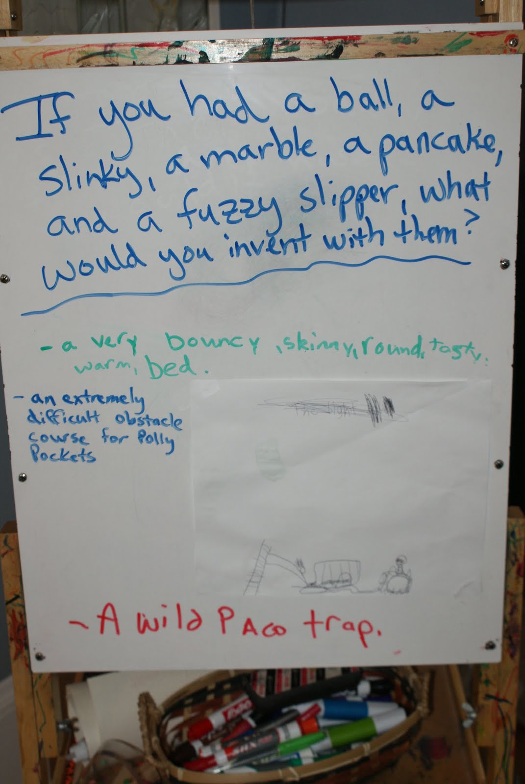 “If you had a ball, a slinky, a marble, a pancake, and a fuzzy slipper, what would you invent with them?”
