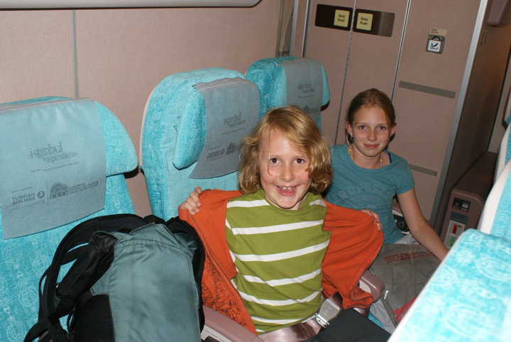 This first picture is of Paco and Girl as they boarded our flight to Istanbul; even after a flight from Minneapolis to Chicago, even after a three-hour layover in Chicago, even after Paco had spent days protesting how much he hated Turkey and that we had to do this thing and that he just wanted to go home to his home, and even after Paco then hummed and jumped and spun and sang his way through the entire day of travel,